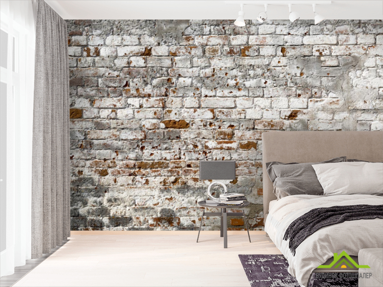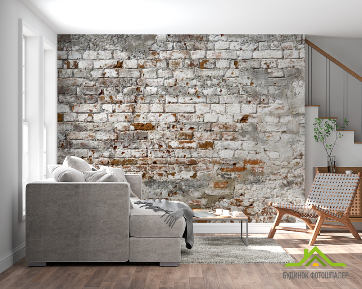 Фотошпалери Біла штукатурка на цеглі Фотошпалери Біла штукатурка на цеглі