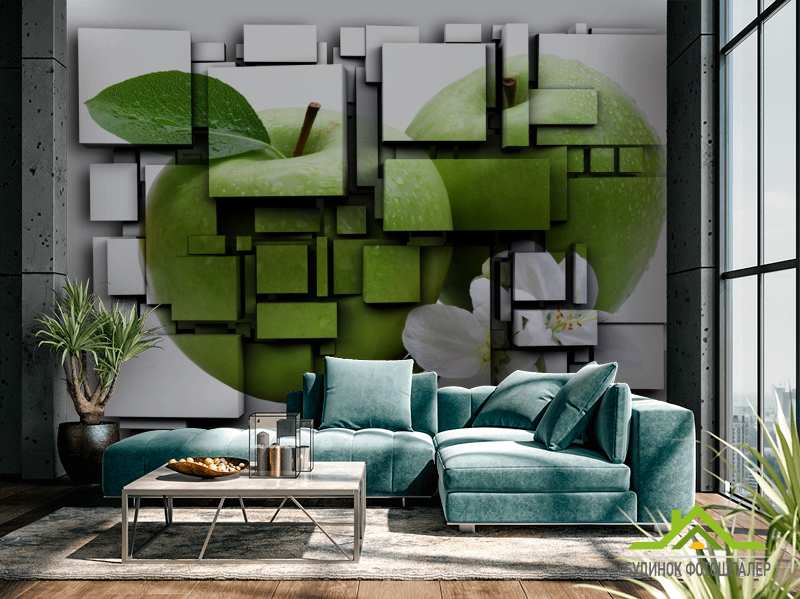 Фотошпалери яблуко на кубах 3Д