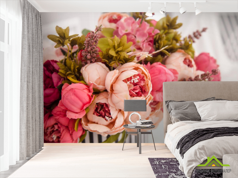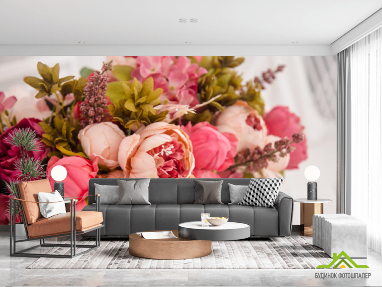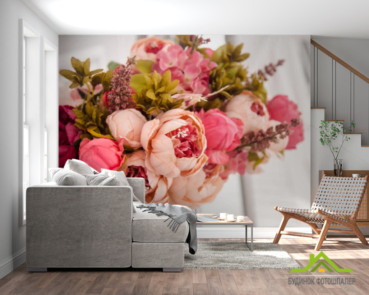 Фотошпалери рожевий букет вкорзине