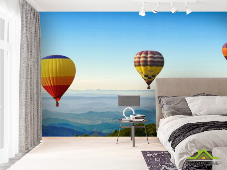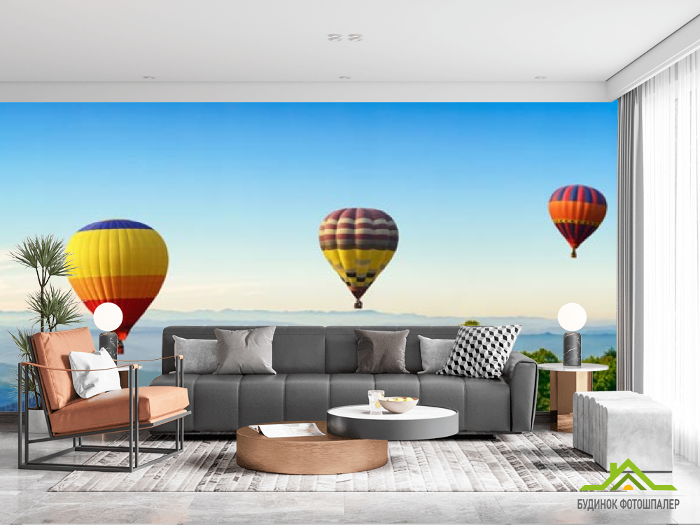 Фотошпалери шість повітряних куль в горах Фотошпалери шість повітряних куль в горах
