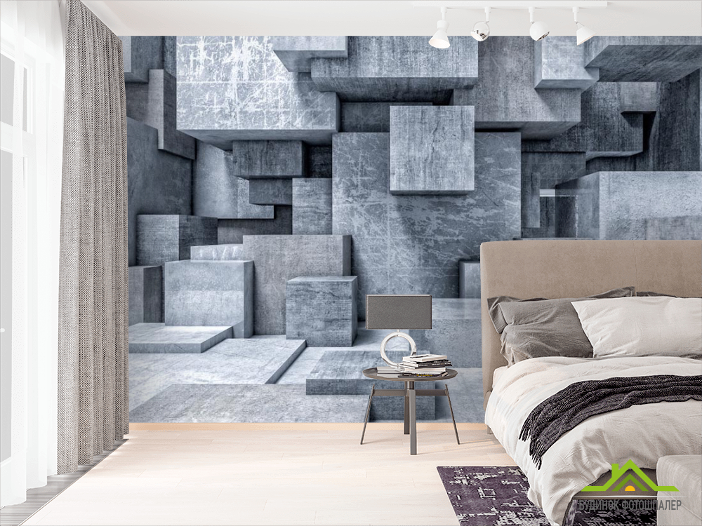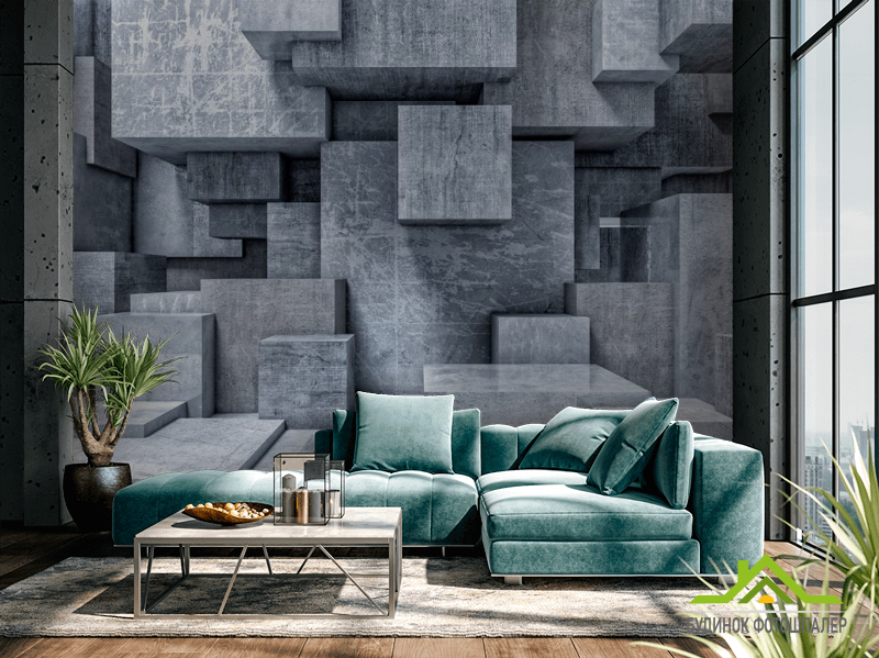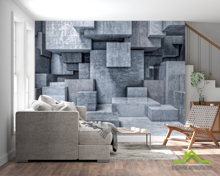 Фотошпалери сірі гранітні куби 3Д Фотошпалери сірі гранітні куби 3Д