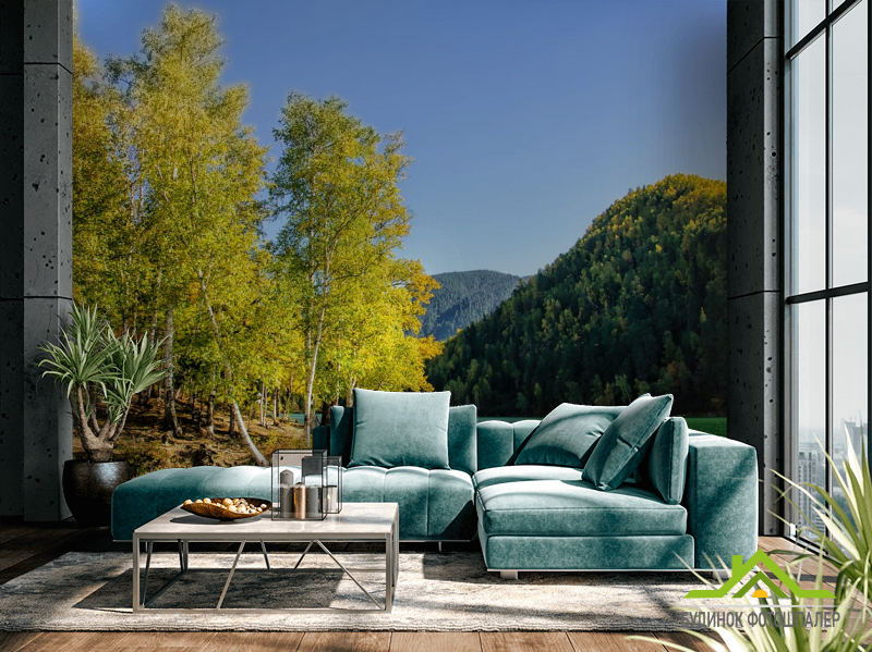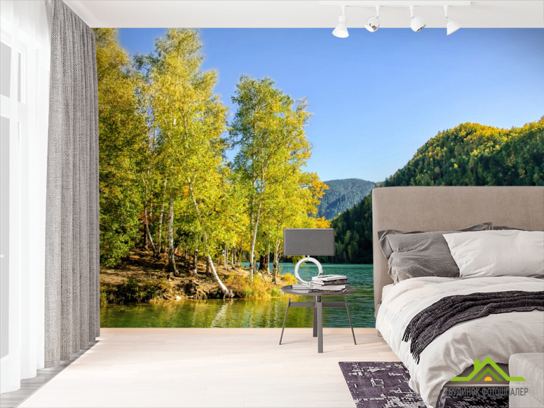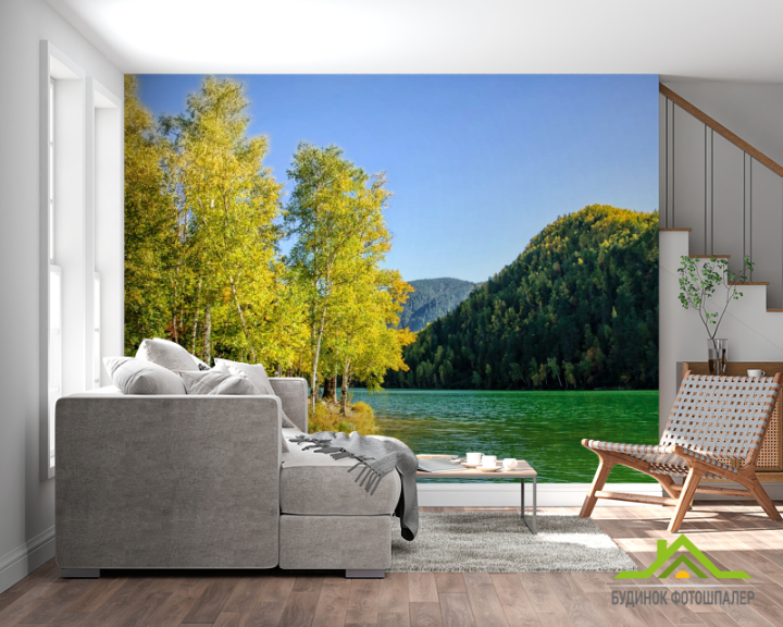 Фотошпалери зелене осіннє озеро Фотошпалери зелене осіннє озеро