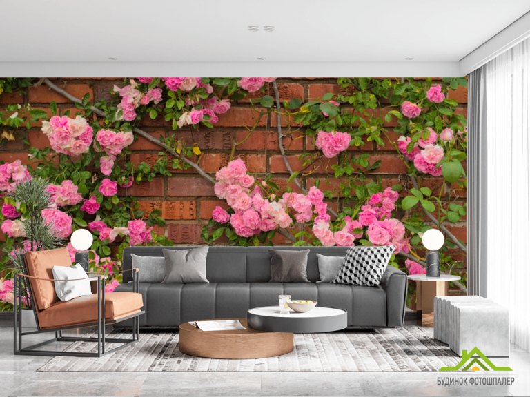 Фотошпалери чайна троянда на цегляній стіні Фотошпалери чайна троянда на цегляній стіні