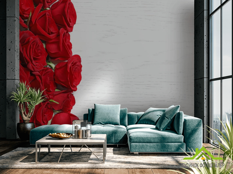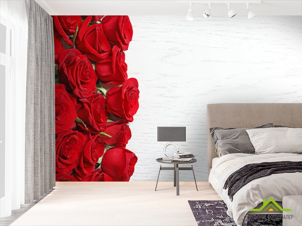 Фотошпалери червоні троянди на білому тлі Фотошпалери червоні троянди на білому тлі