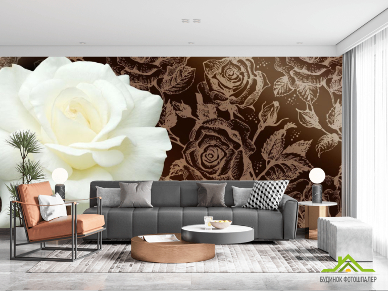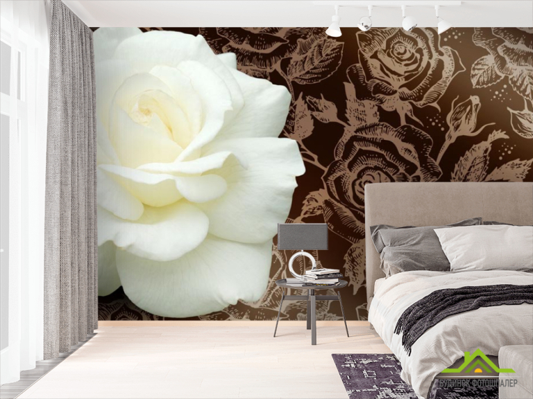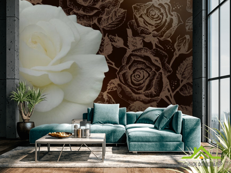 Фотошпалери Величезна біла троянда і патерн Фотошпалери Величезна біла троянда і патерн