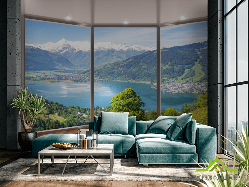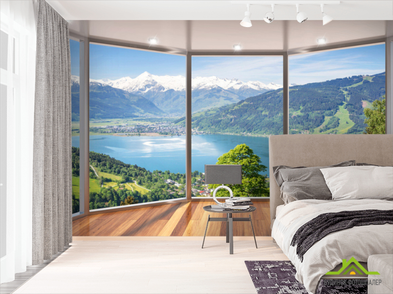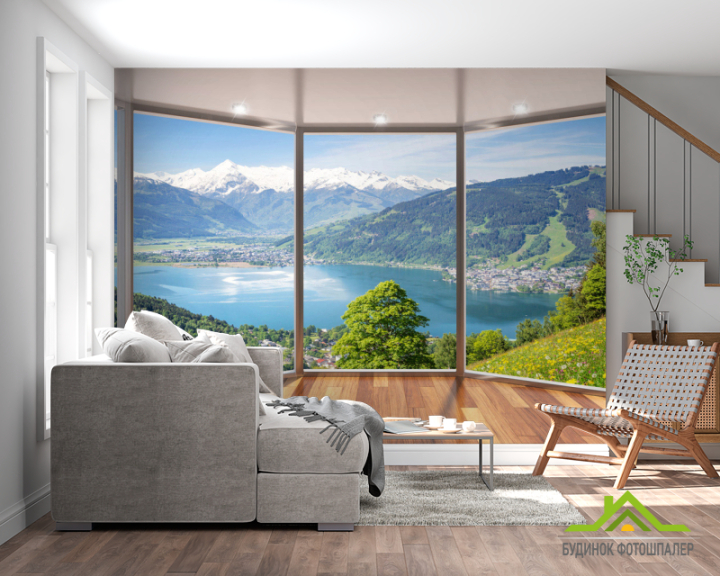 Фотошпалери Вид з вікна на озеро Фотошпалери Вид з вікна на озеро