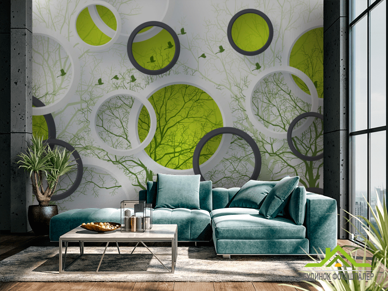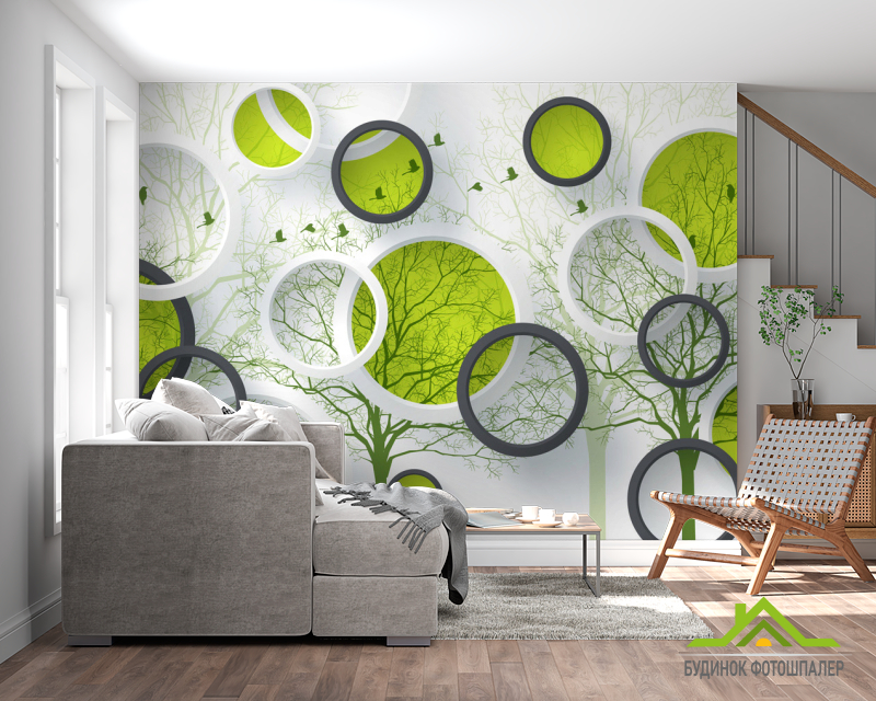 Фотошпалери Кола і зелені дерева Фотошпалери Кола і зелені дерева