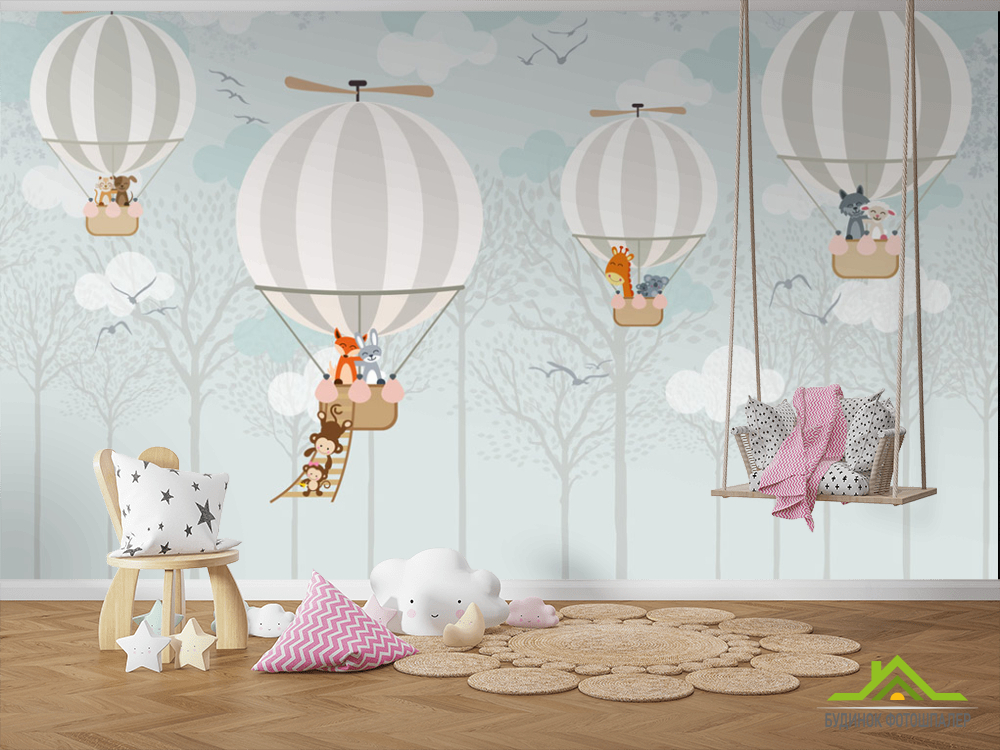 Фотошпалери Звірі летять на повітряних кулях