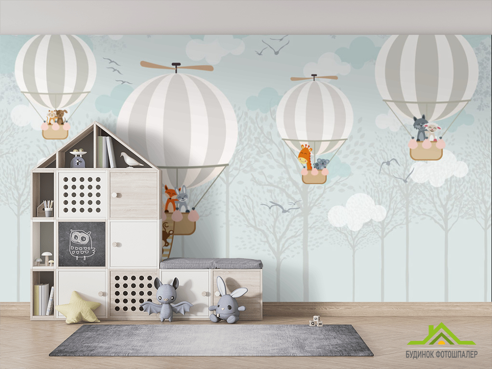 Фотошпалери Звірі летять на повітряних кулях Фотошпалери Звірі летять на повітряних кулях