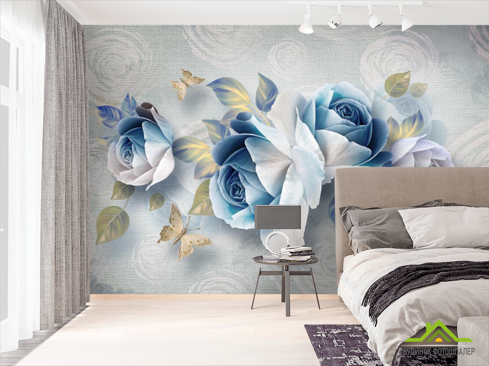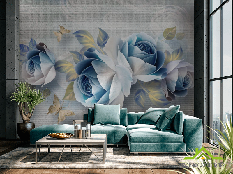 Фотошпалери Сині квіти 3д Фотошпалери Сині квіти 3д