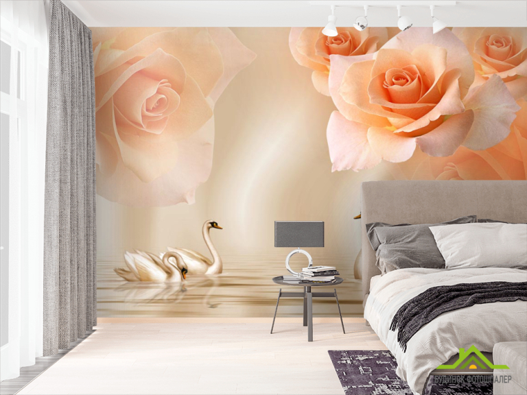 Фотошпалери Помаранчеві троянди на атласі Фотошпалери Помаранчеві троянди на атласі