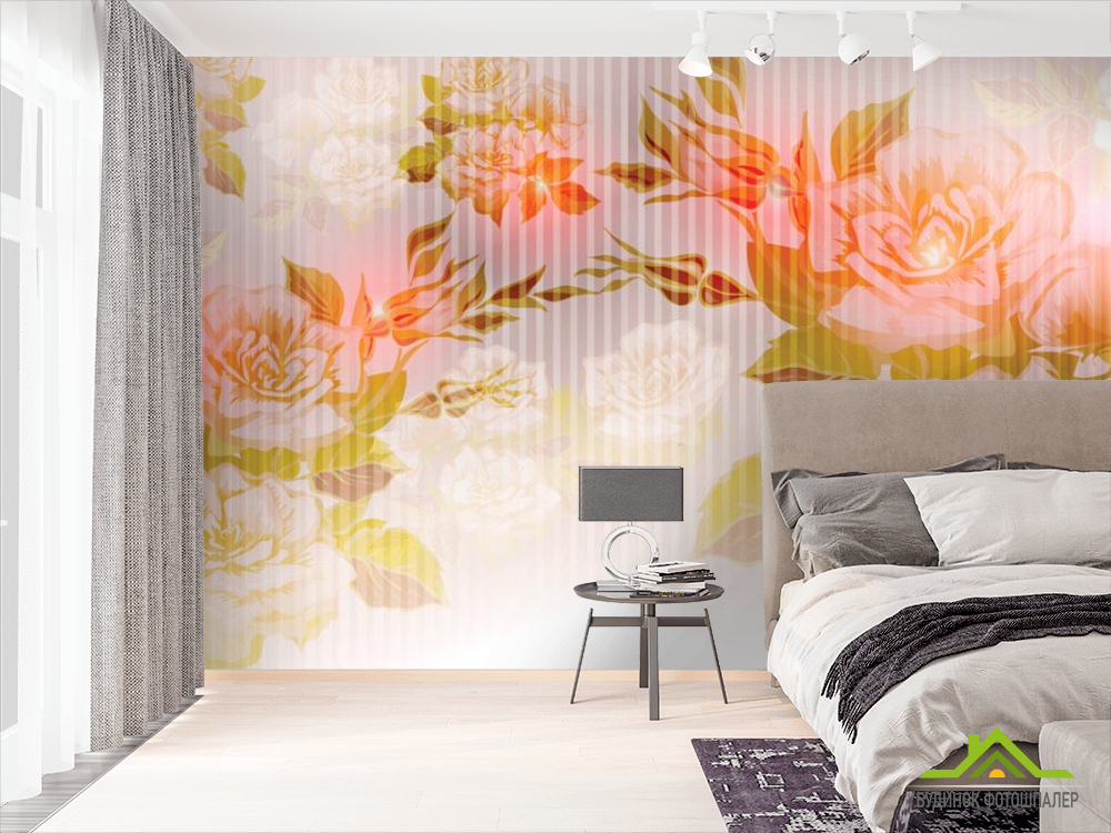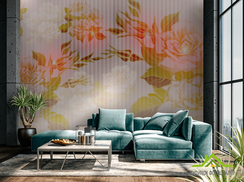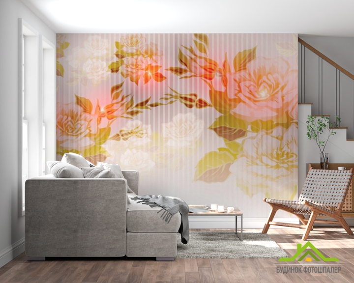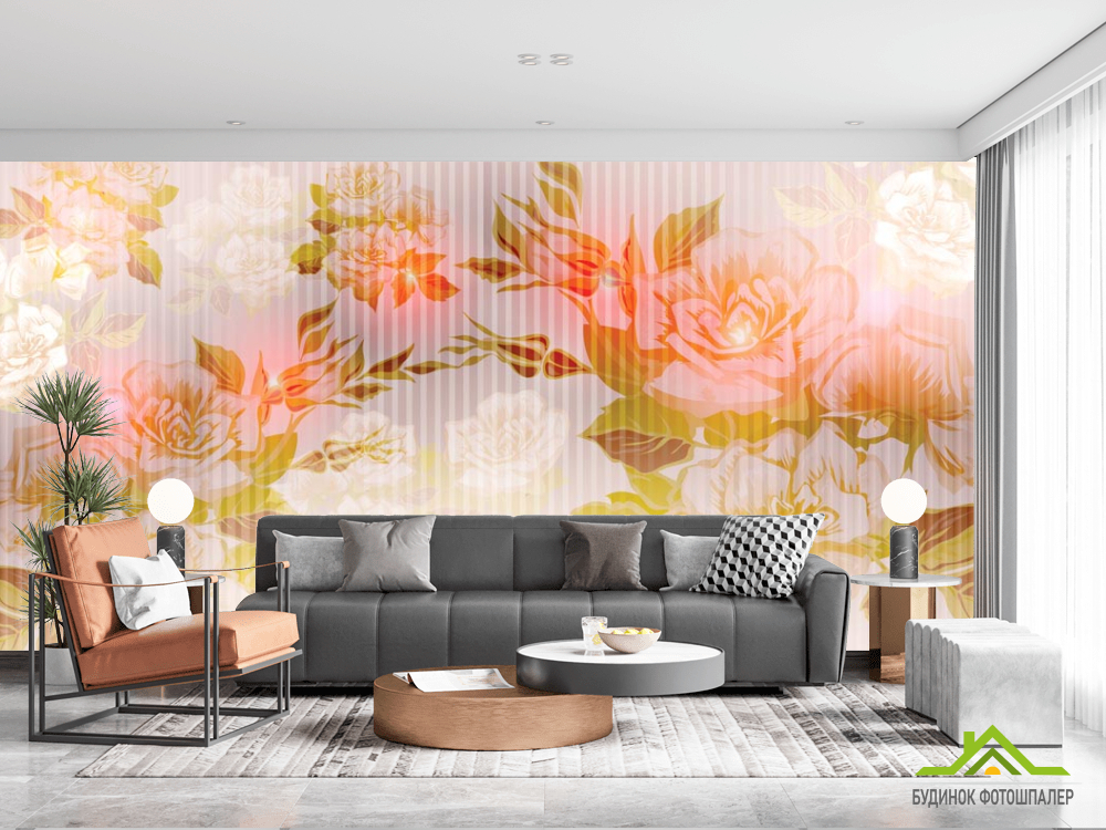 Фотошпалери Помаранчевий принт з квітами Фотошпалери Помаранчевий принт з квітами