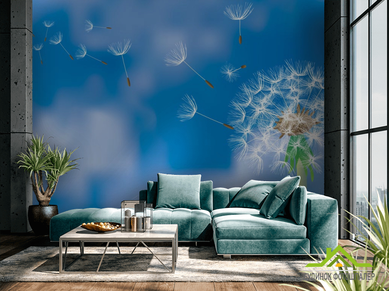 Фотошпалери Кульбаба на синьому тлі Фотошпалери Кульбаба на синьому тлі