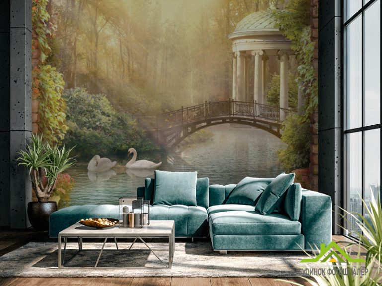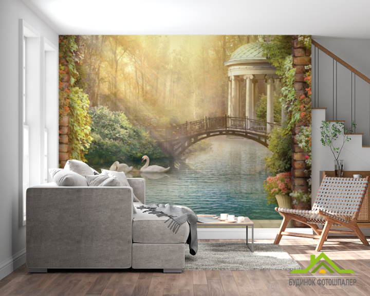 Фотошпалери Лебеді на ставку