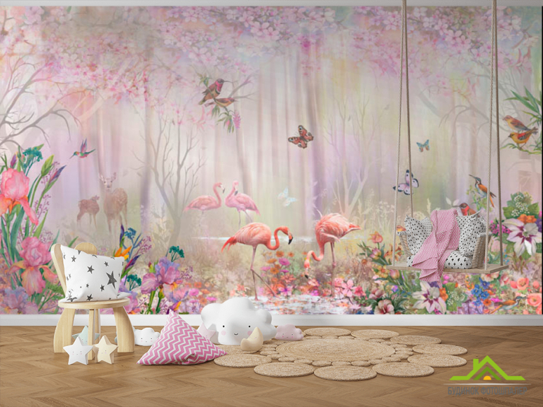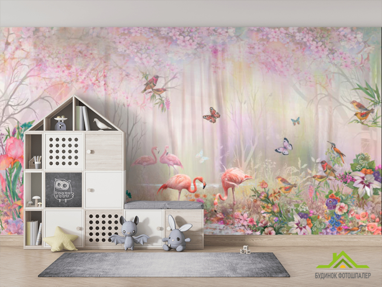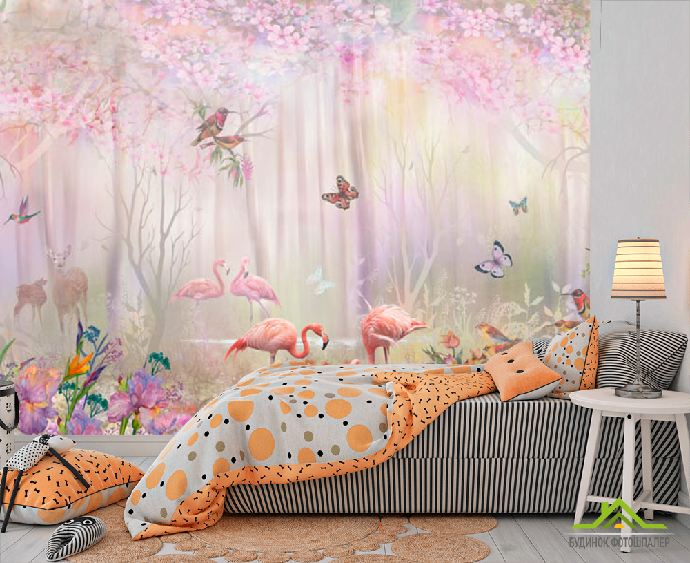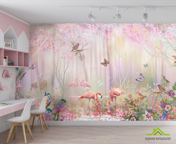 Фотошпалери Фламінго в лісі сказачном Фотошпалери Фламінго в лісі сказачном
