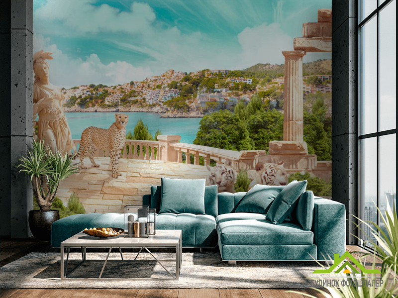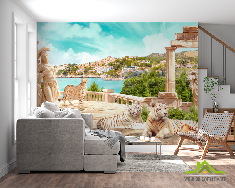 Фотошпалери Фреска з тиграми Фотошпалери Фреска з тиграми