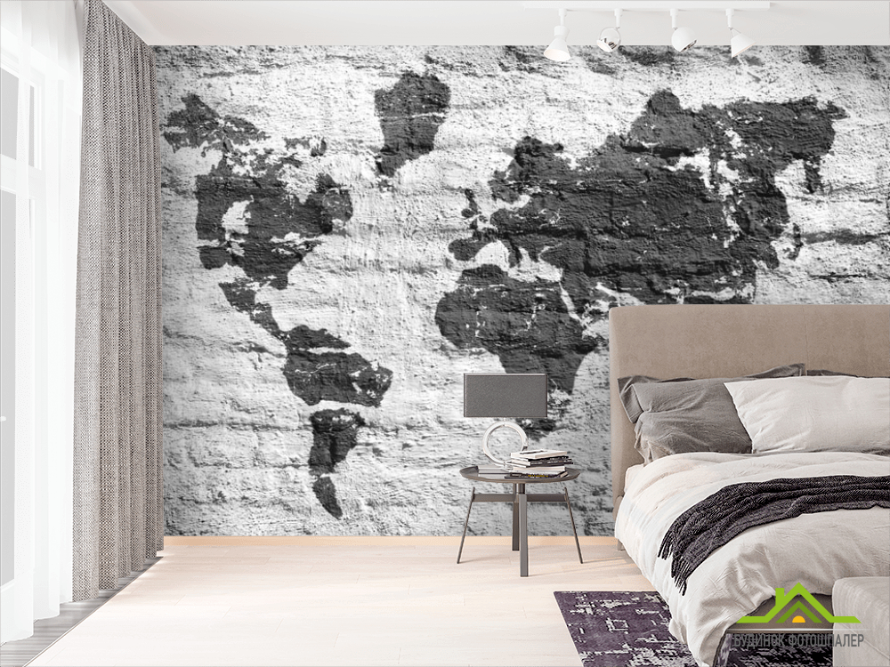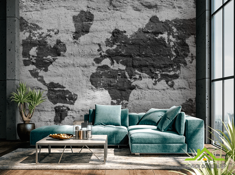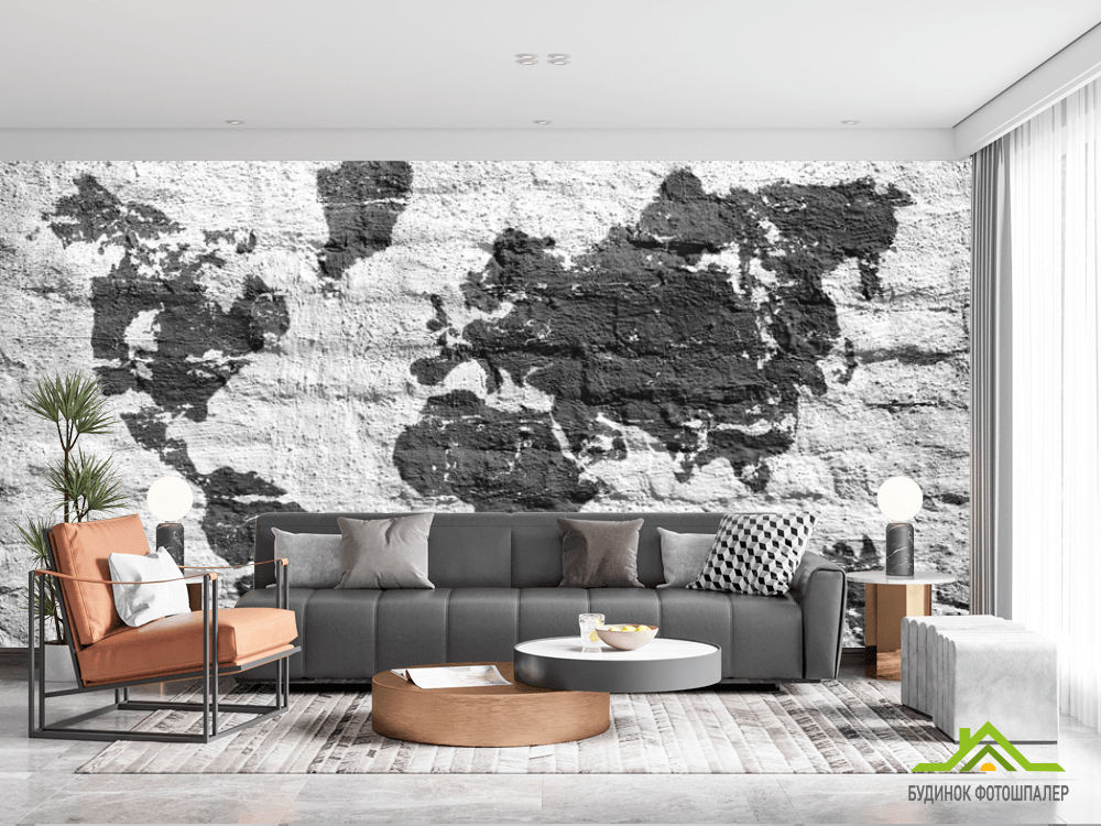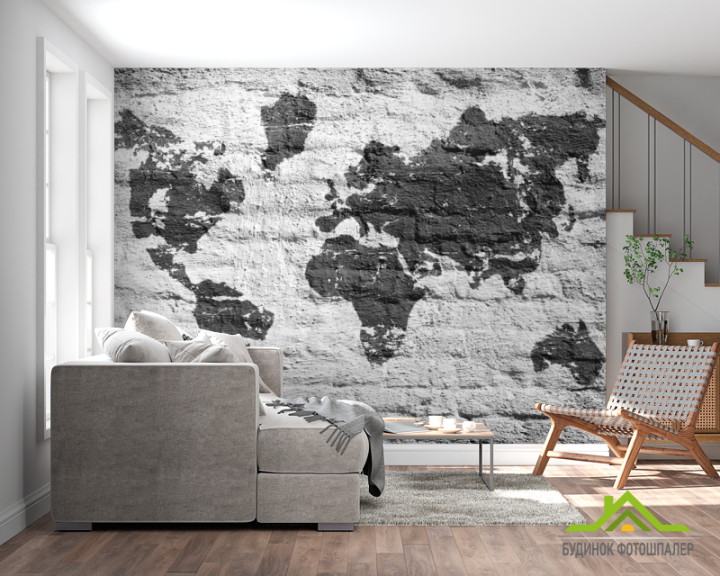 Фотошпалери Картами світу на тлі цегли Фотошпалери Картами світу на тлі цегли