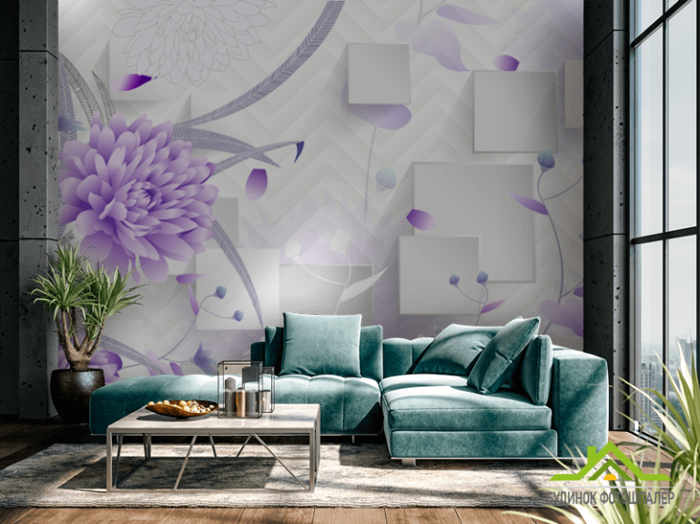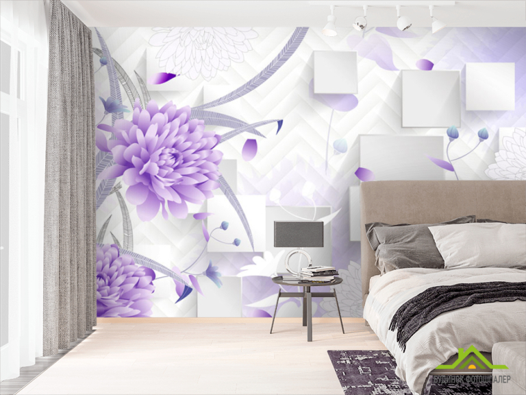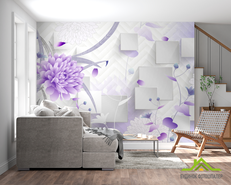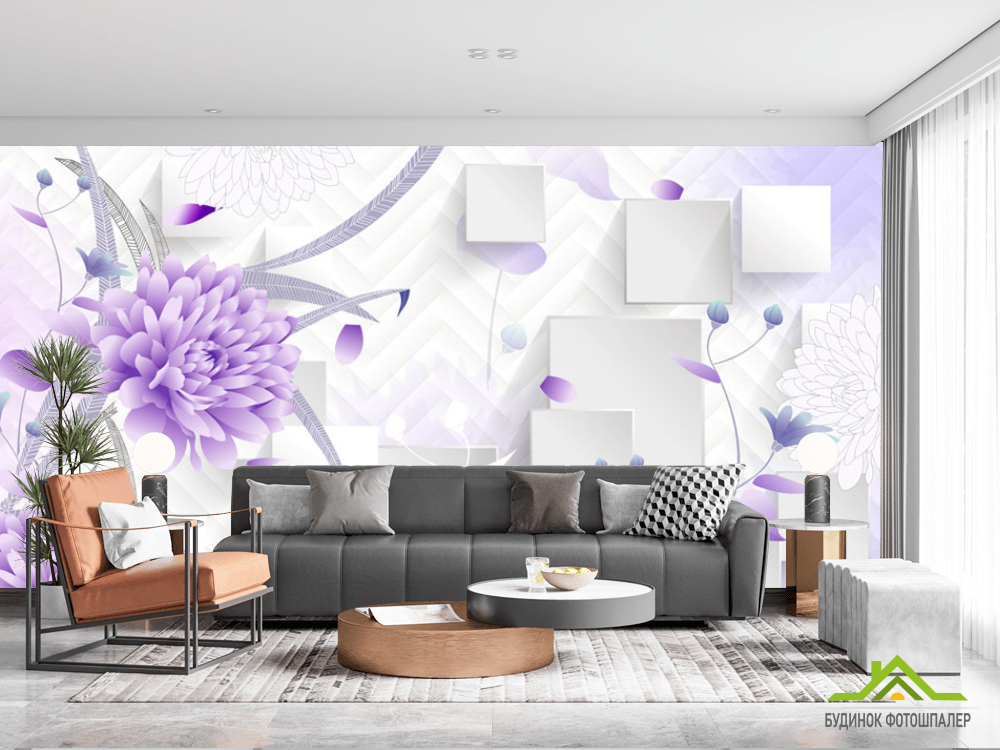 Фотошпалери Фіолетові квіти 3д Фотошпалери Фіолетові квіти 3д