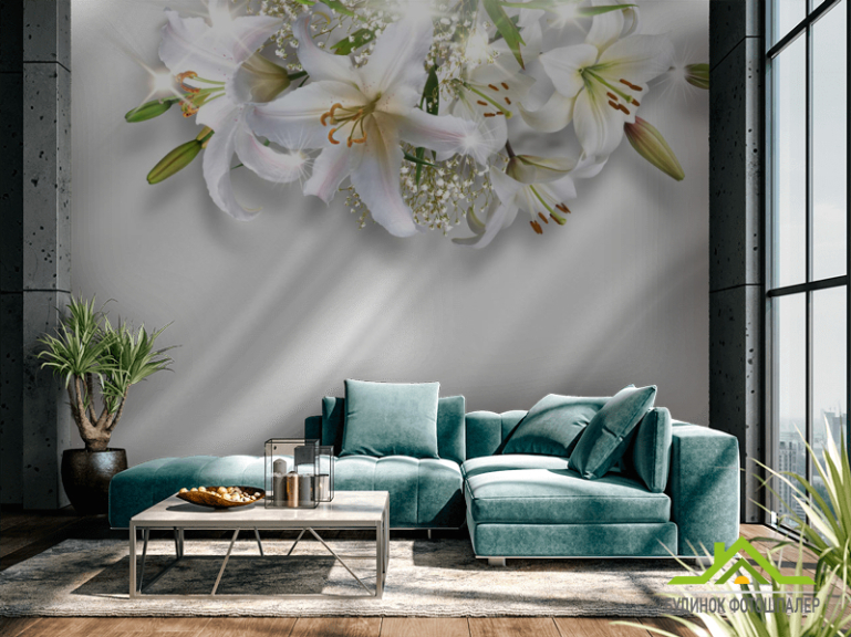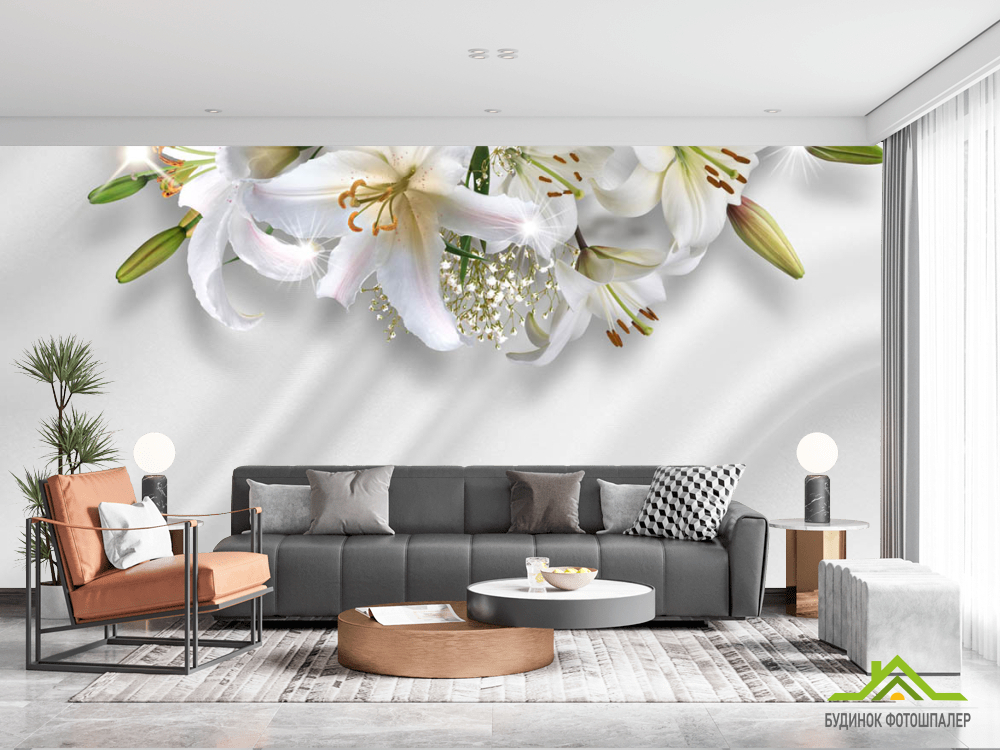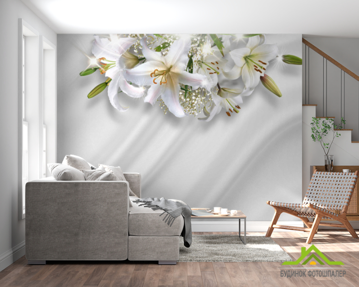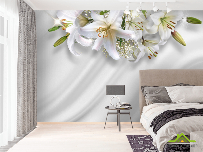 Фотошпалери Лілії на тлі атласу Фотошпалери Лілії на тлі атласу