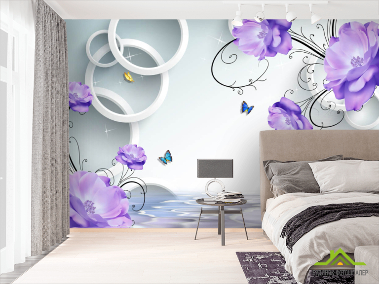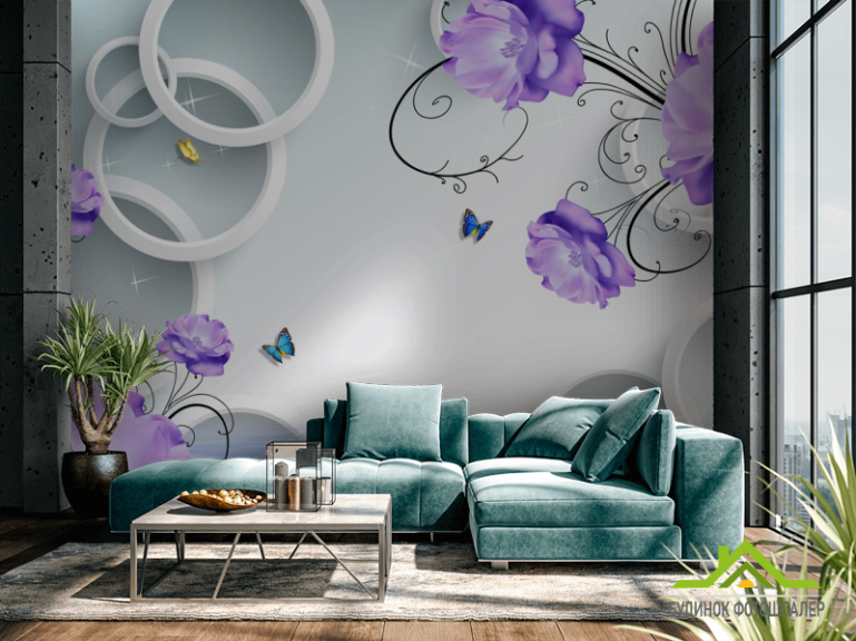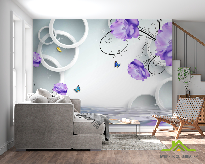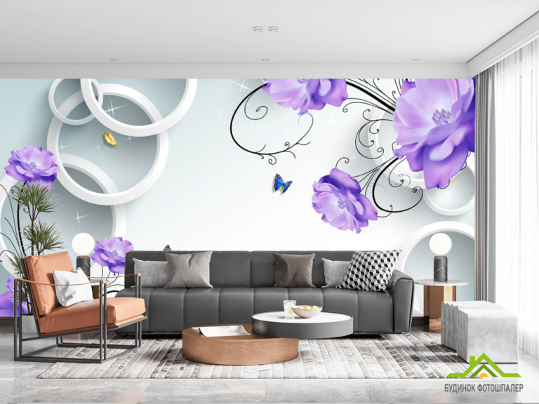 Фотошпалери Фіолетові квіти з колами Фотошпалери Фіолетові квіти з колами
