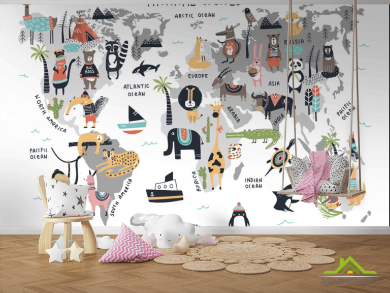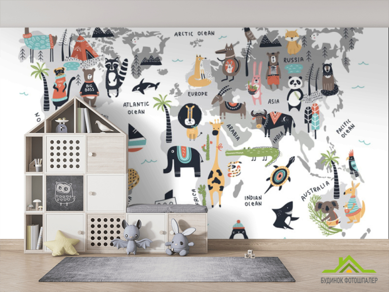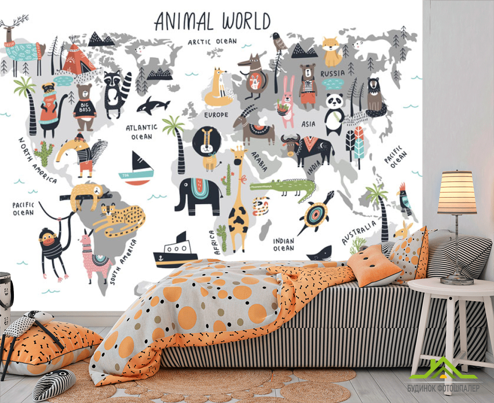 Фотошпалери Карта світу з тваринами Фотошпалери Карта світу з тваринами