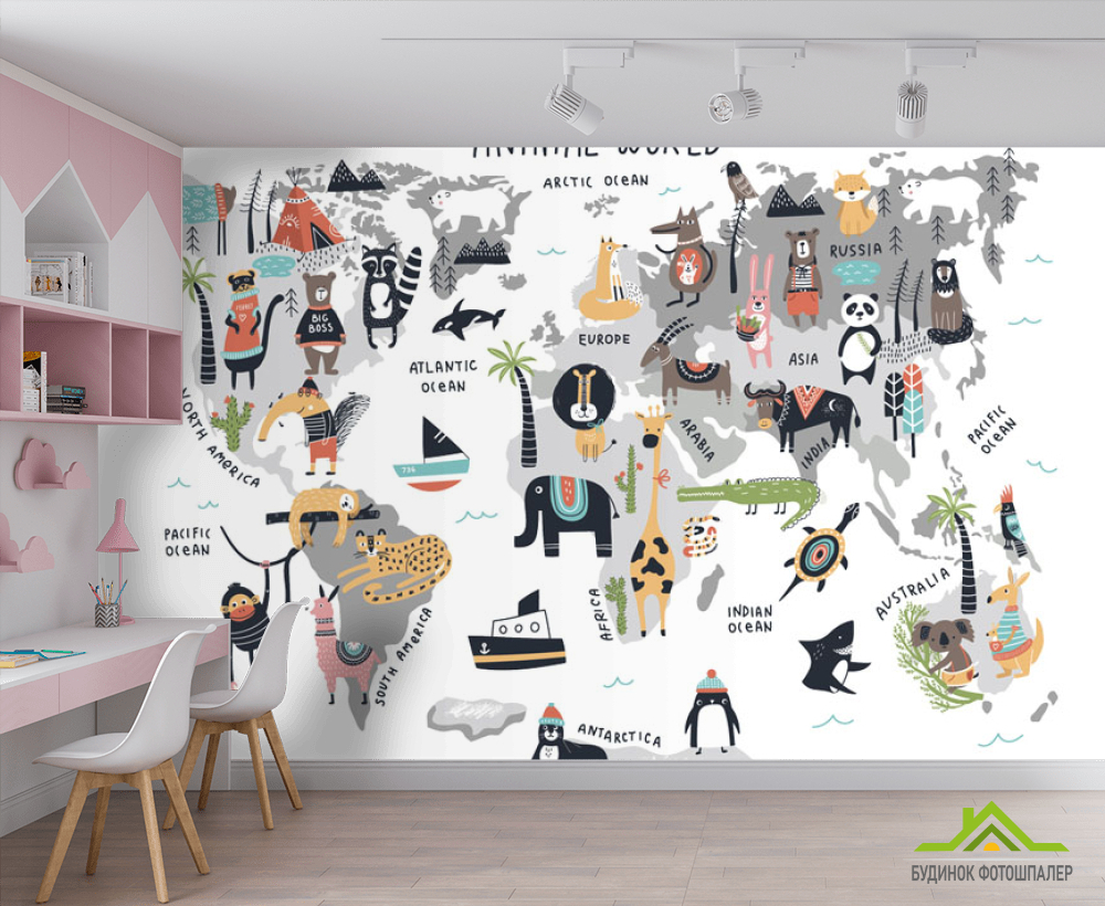 Фотошпалери Карта світу з тваринами