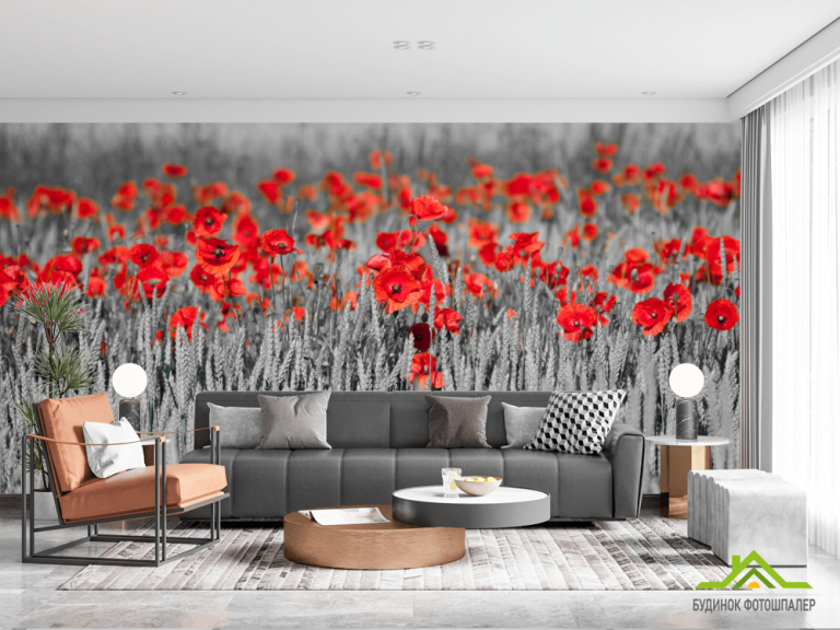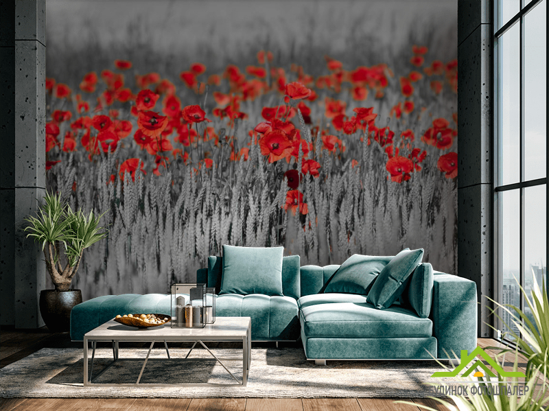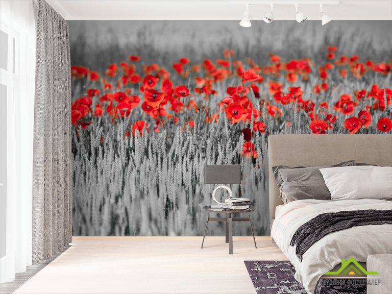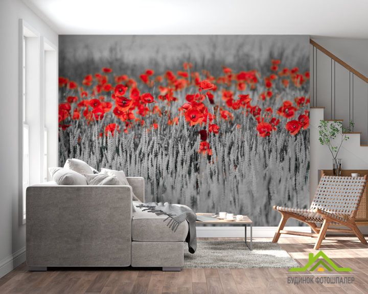 Фотошпалери Червоні маки на тлі чб Фотошпалери Червоні маки на тлі чб