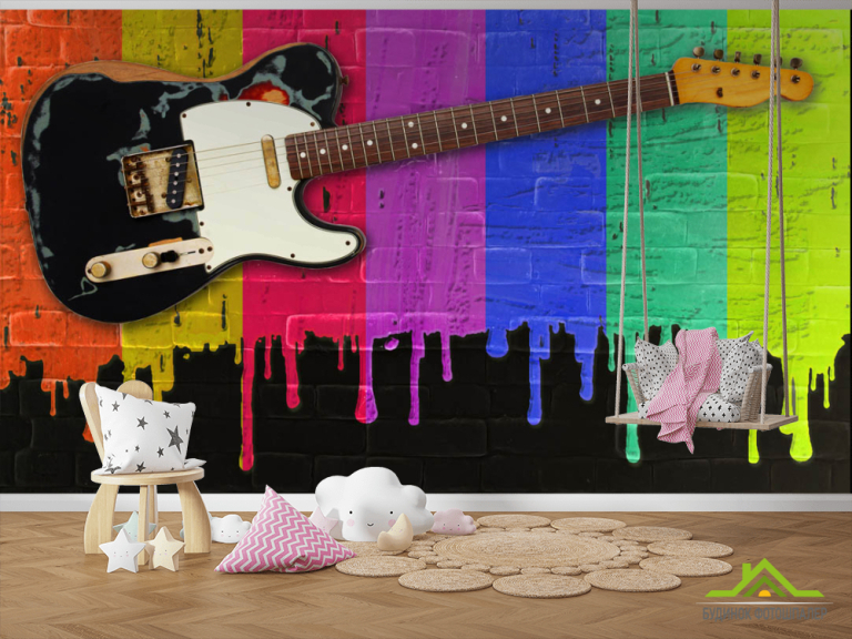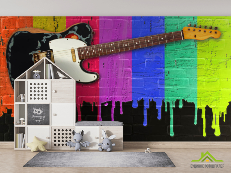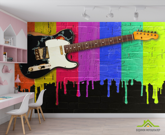 Фотошпалери Гітара на тлі фарб