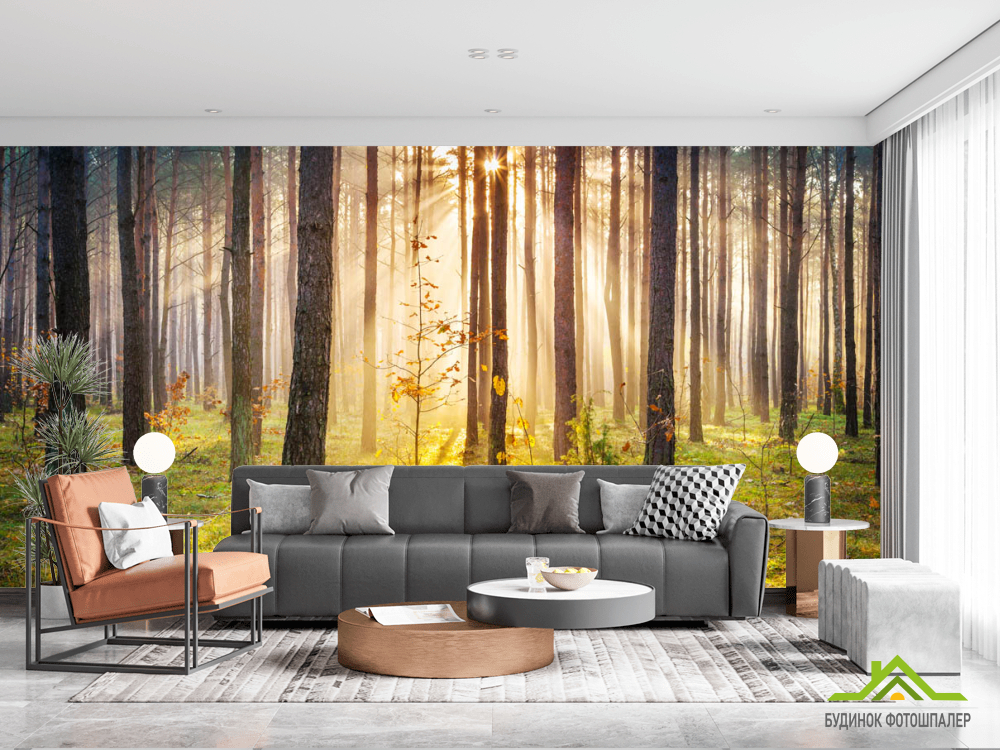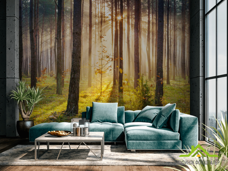 Фотошпалери Захід сонця в лісі Фотошпалери Захід сонця в лісі