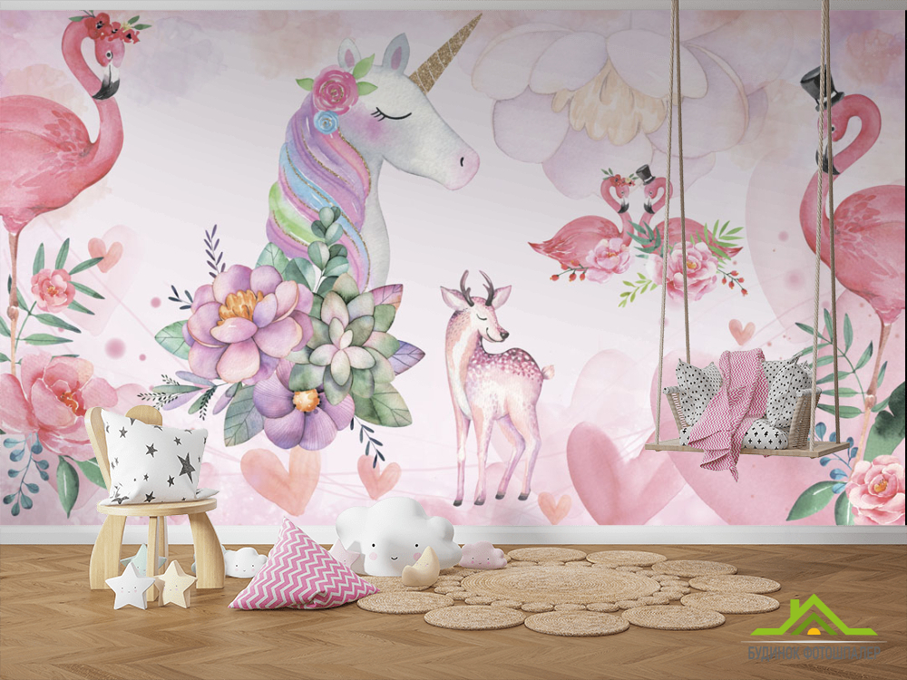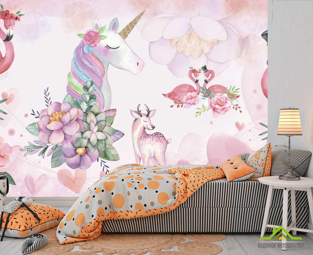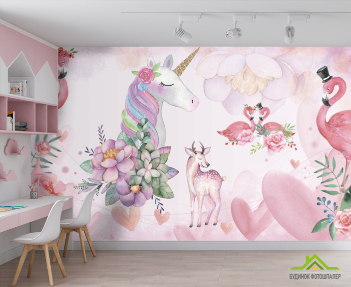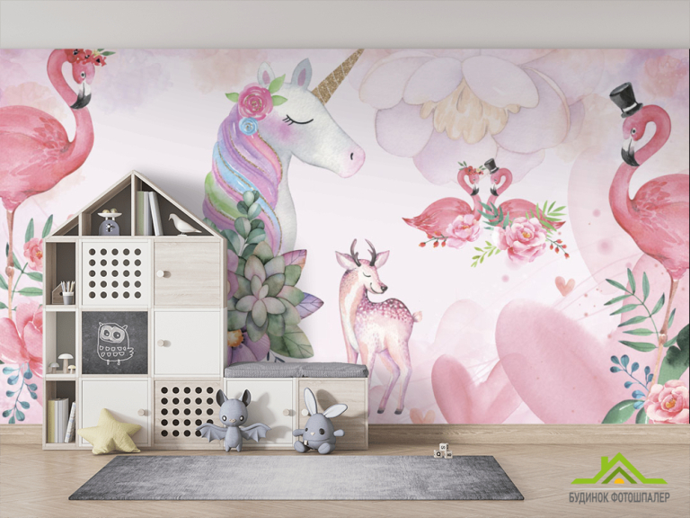 Фотошпалери Єдинороги і фламінго