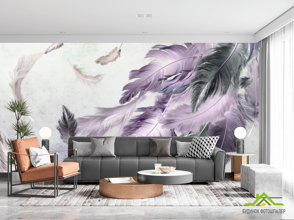 Фотошпалери Пір'я на сірому тлі Фотошпалери Пір'я на сірому тлі