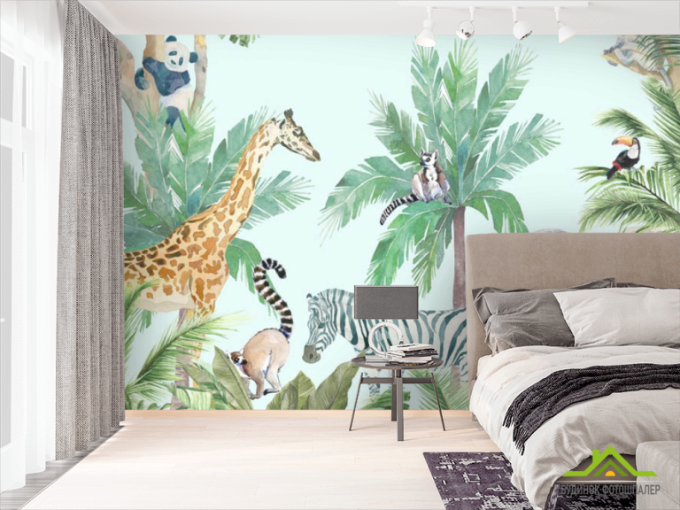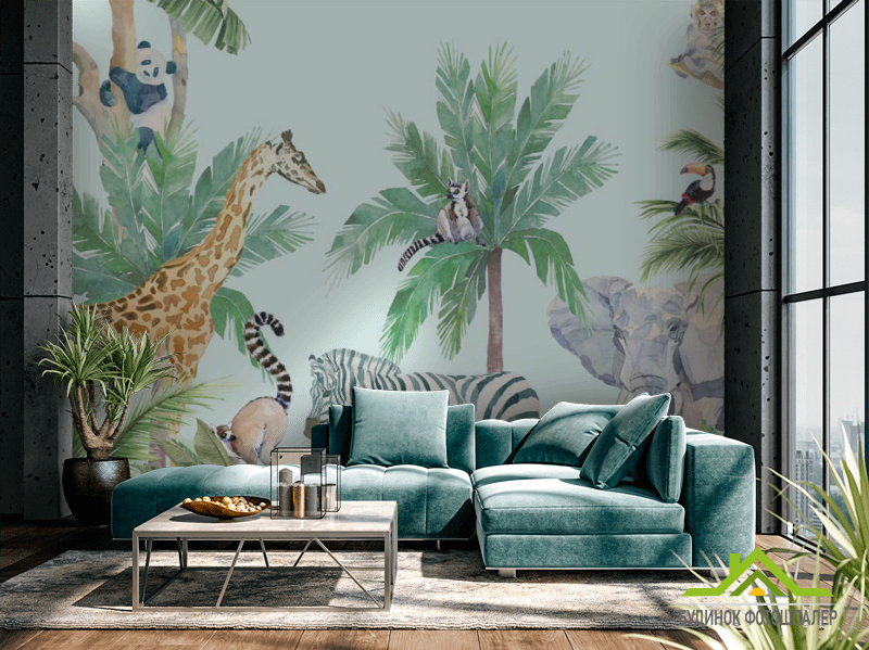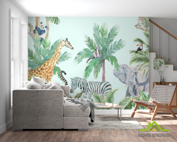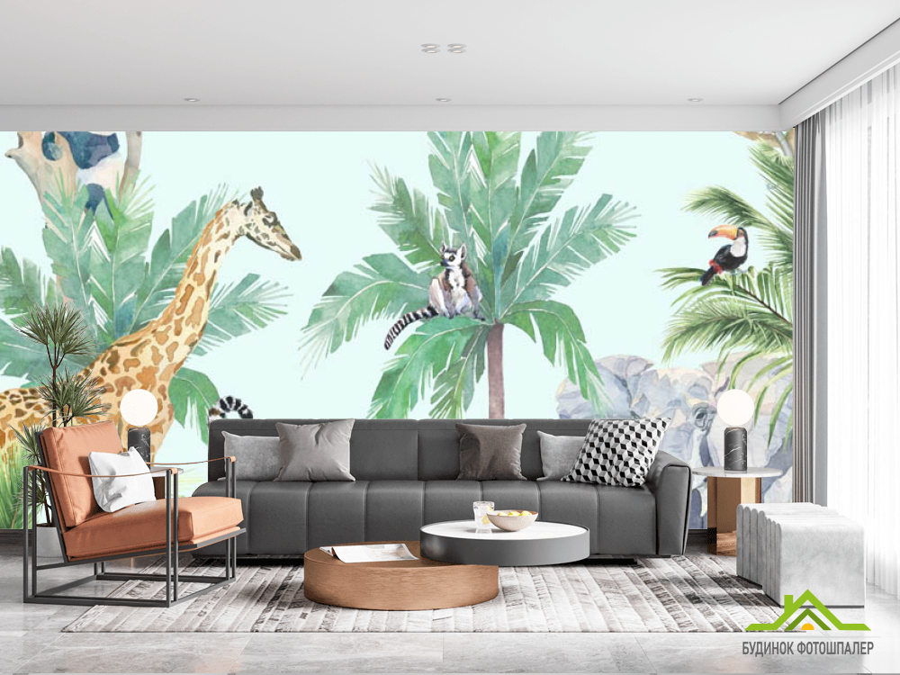 Фотошпалери слон, зебра, жираф Фотошпалери слон, зебра, жираф