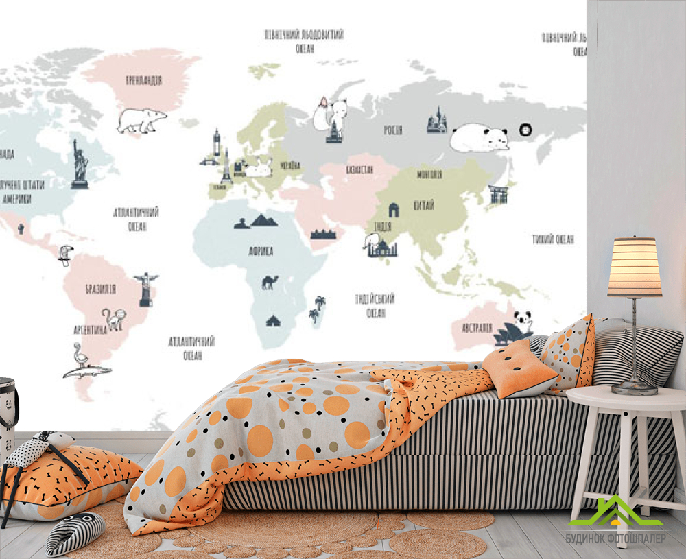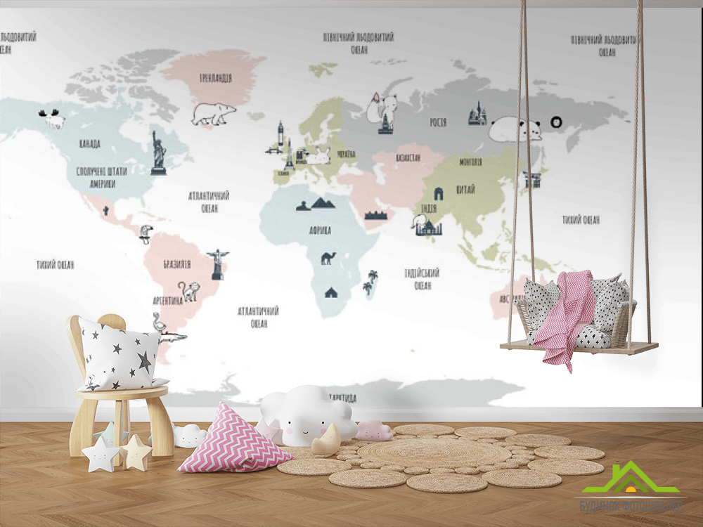 Фотошпалери мінімалістична карта в дитячу українською Фотошпалери мінімалістична карта в дитячу українською