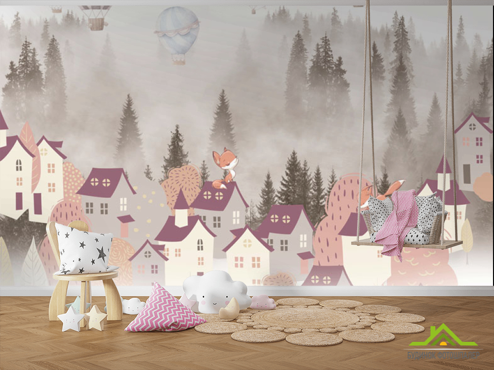 Фотошпалери Будиночки на лісовій галявині Фотошпалери Будиночки на лісовій галявині