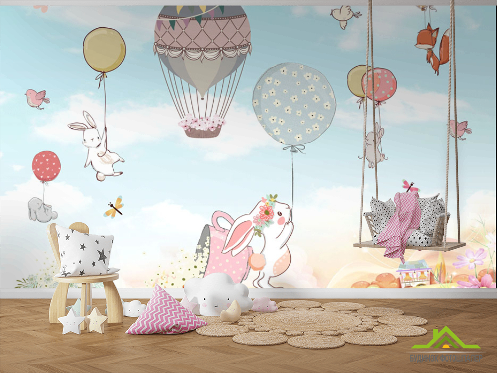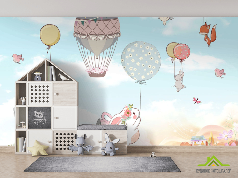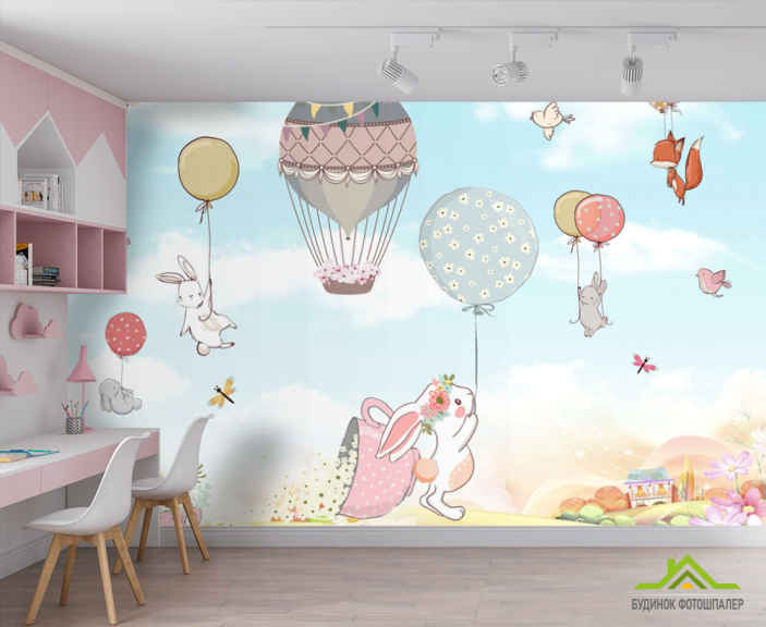 Фотошпалери Зайчика на повітряних кулях
