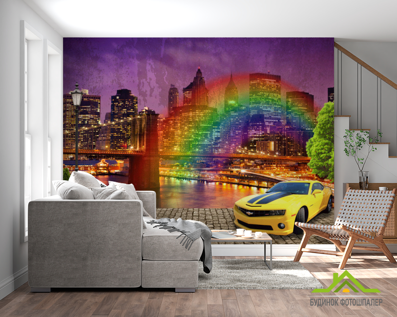 Фотошпалери Машина на тлі міста Фотошпалери Машина на тлі міста