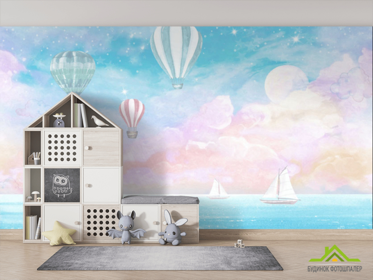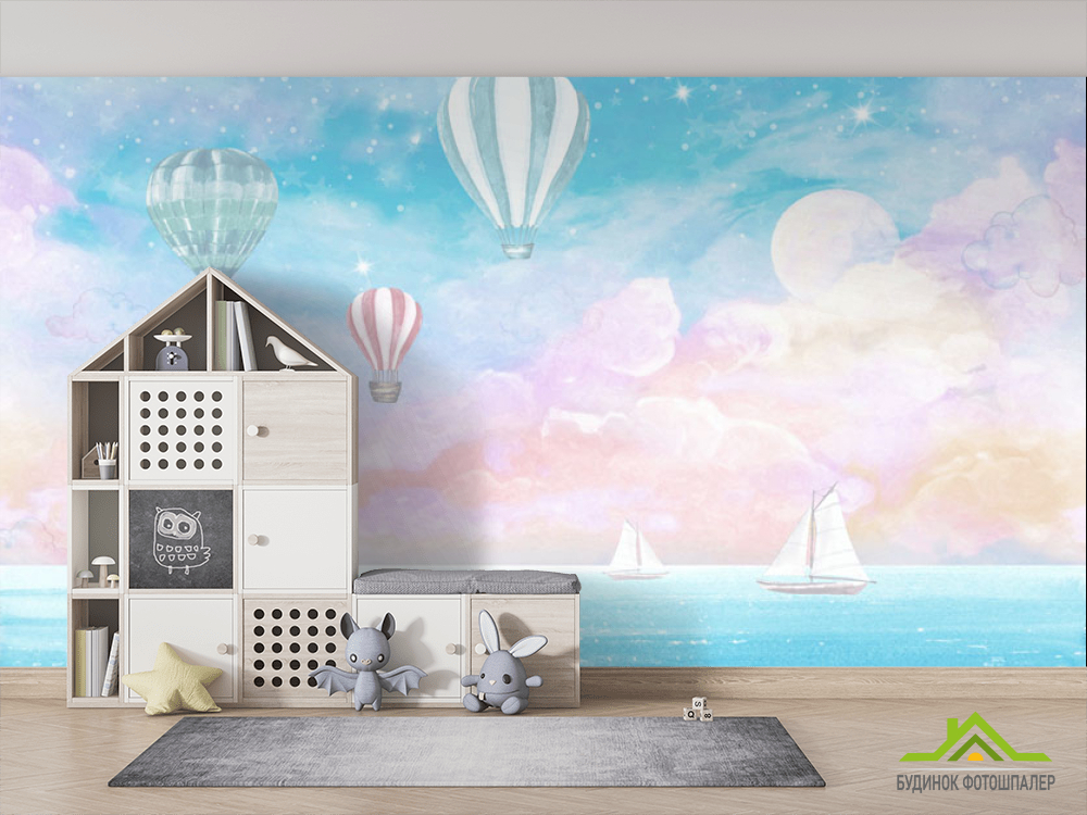 Фотошпалери Повітряні кулі на блакитному тлі