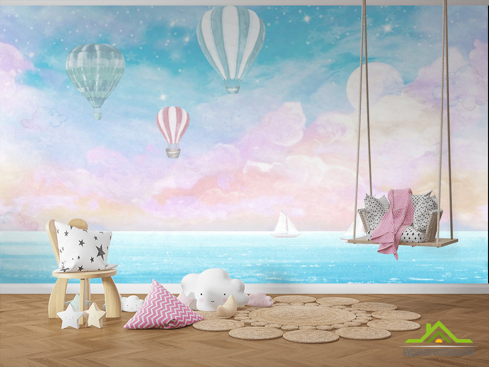 Фотошпалери Повітряні кулі на блакитному тлі Фотошпалери Повітряні кулі на блакитному тлі