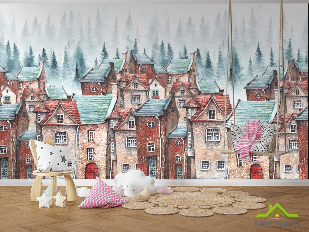Фотошпалери Будиночки в лісі Фотошпалери Будиночки в лісі