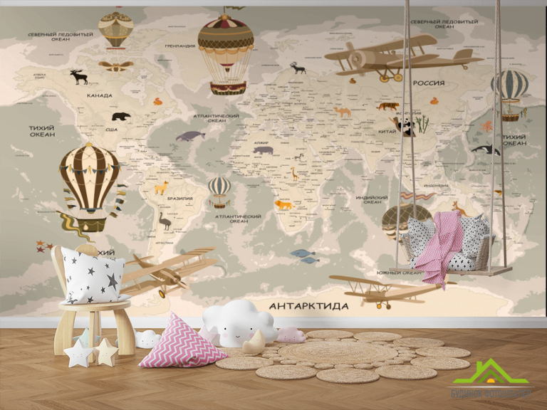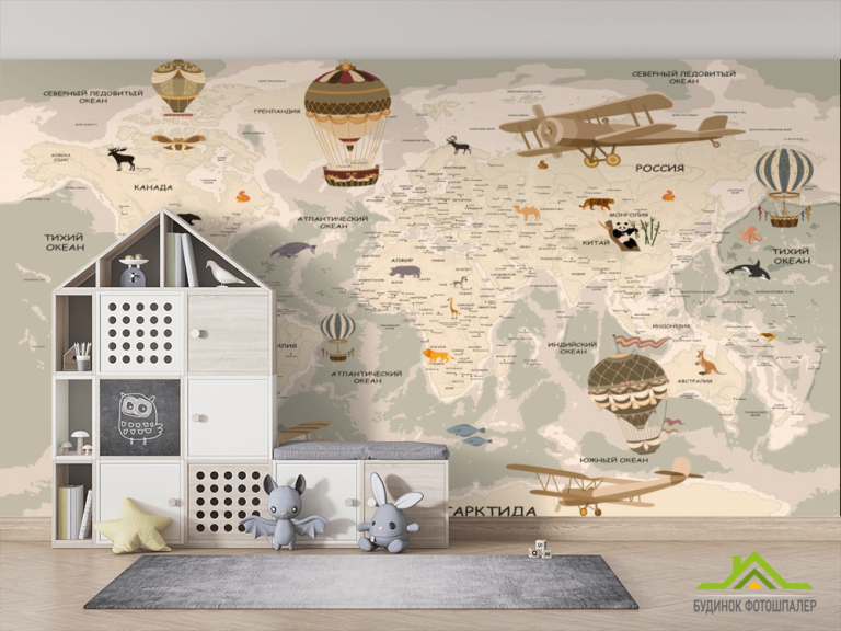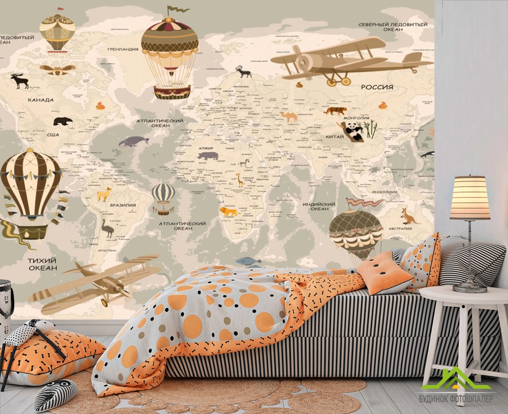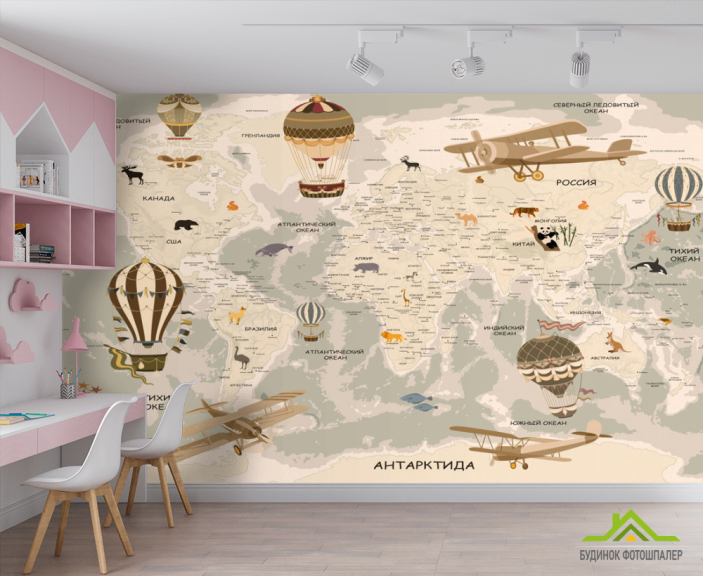 Фотошпалери Коричнева карта зі звіринками Фотошпалери Коричнева карта зі звіринками