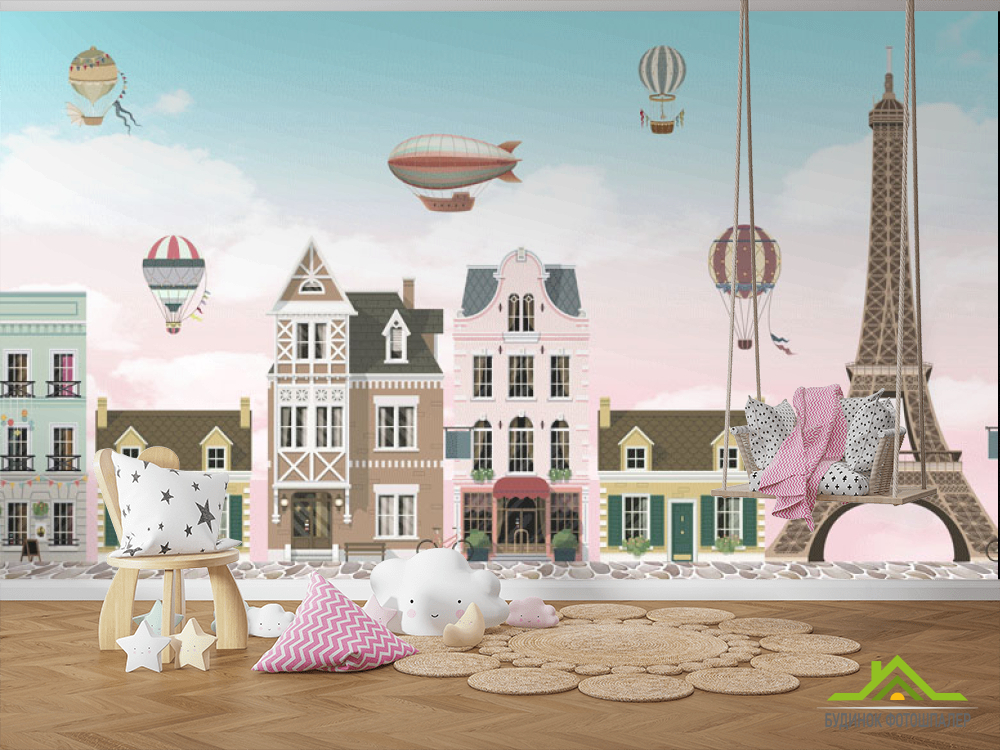 Фотошпалери Будиночки і эйфилевая вежа Фотошпалери Будиночки і эйфилевая вежа