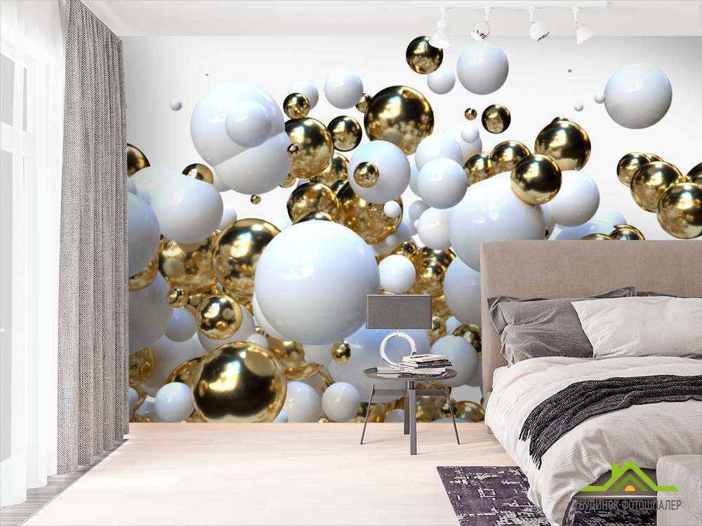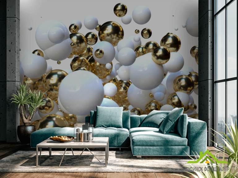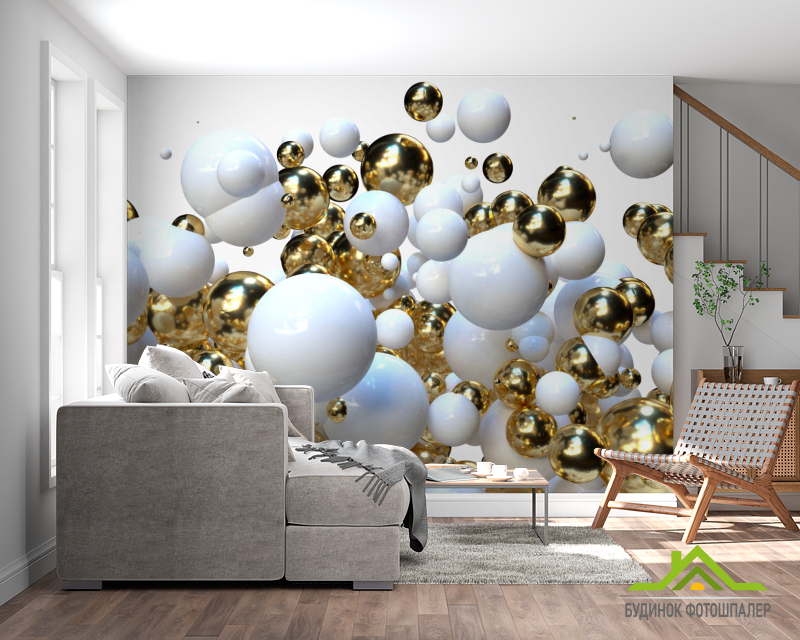 Фотошпалери Біло-золоті кулі 3д Фотошпалери Біло-золоті кулі 3д