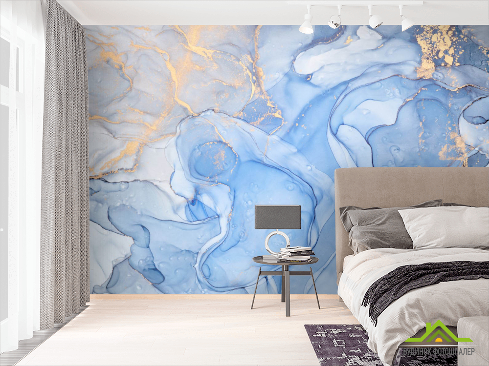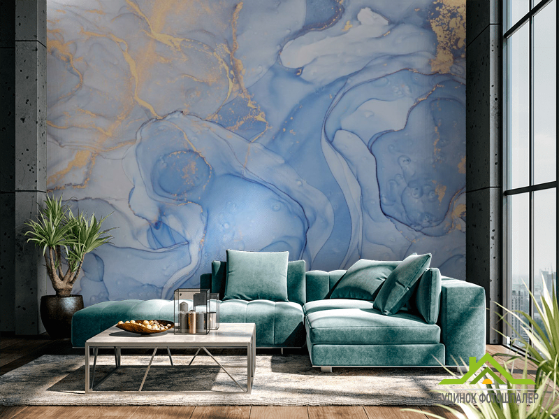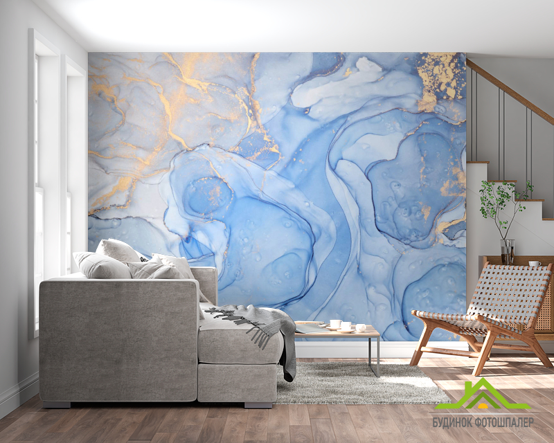 Фотошпалери Блакитний флюїд з золотом Фотошпалери Блакитний флюїд з золотом