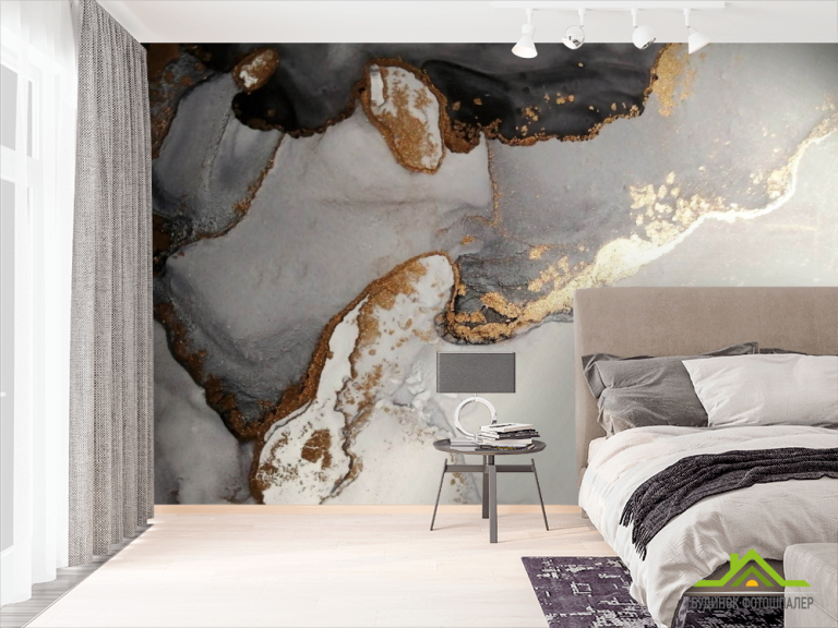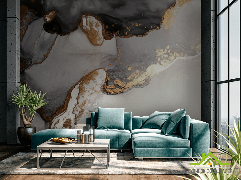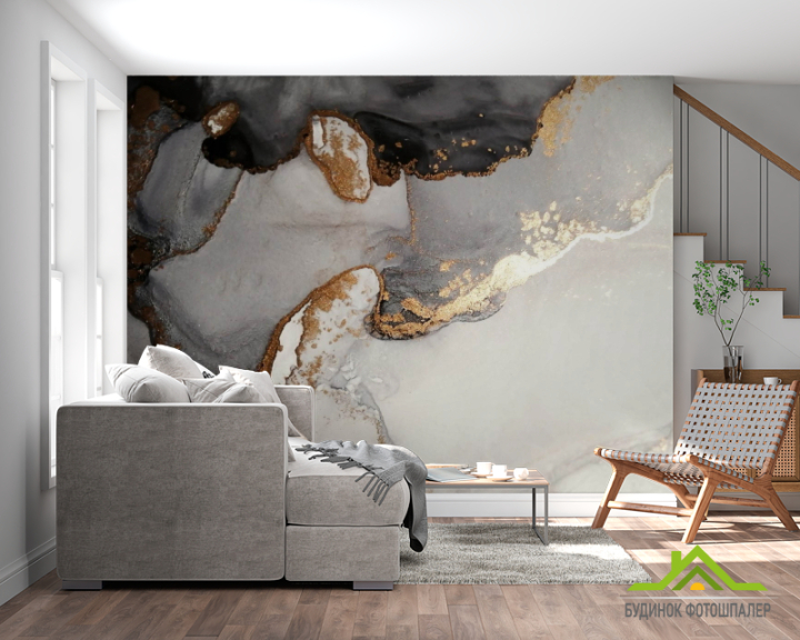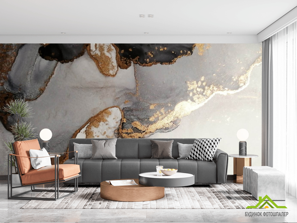 Фотошпалери Флюїд чб з золотом Фотошпалери Флюїд чб з золотом