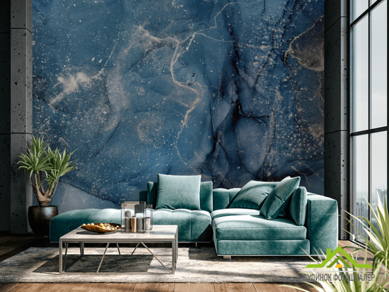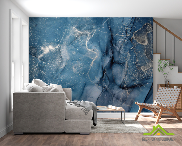 Фотошпалери Синій флюїд з сріблом