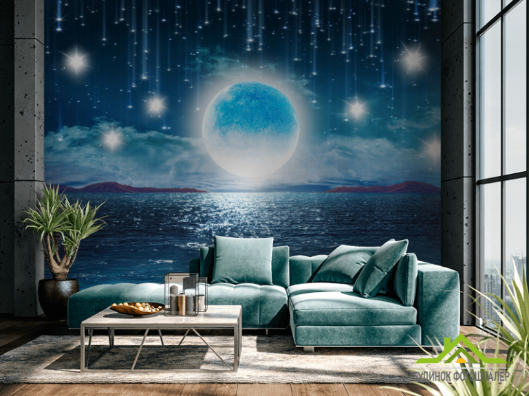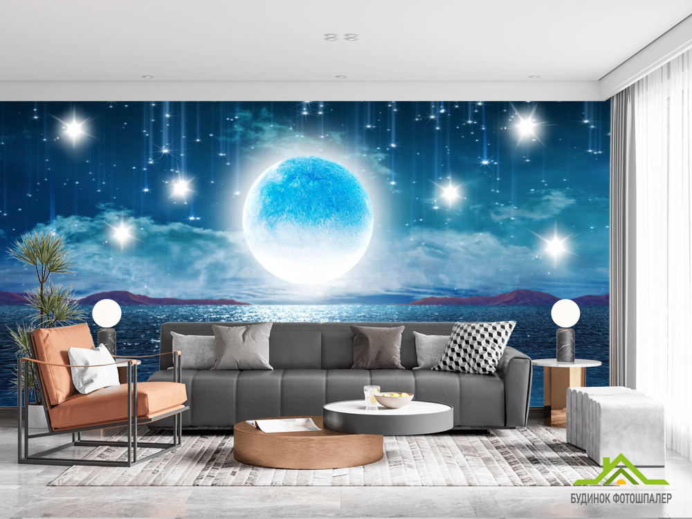 Фотошпалери 3д космос над морем Фотошпалери 3д космос над морем