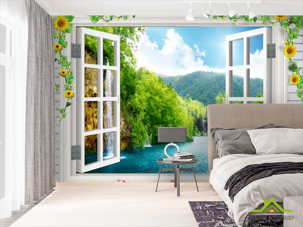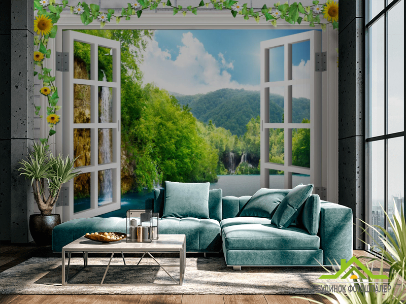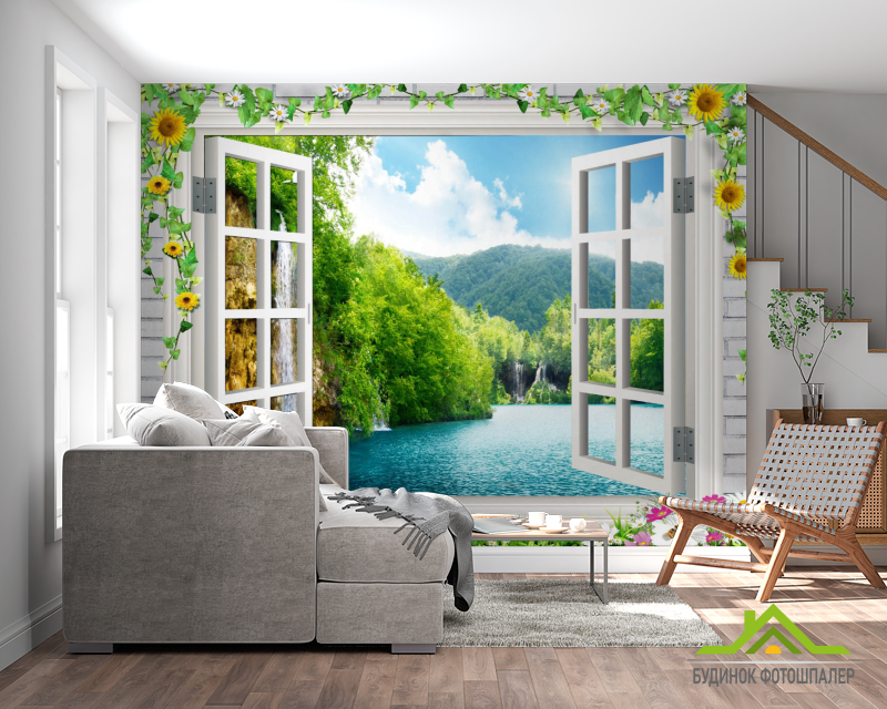 Фотошпалери Водоспад за вікном Фотошпалери Водоспад за вікном