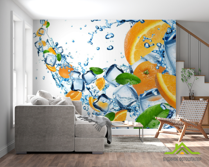 Фотошпалери Апельсини і кубики льоду Фотошпалери Апельсини і кубики льоду