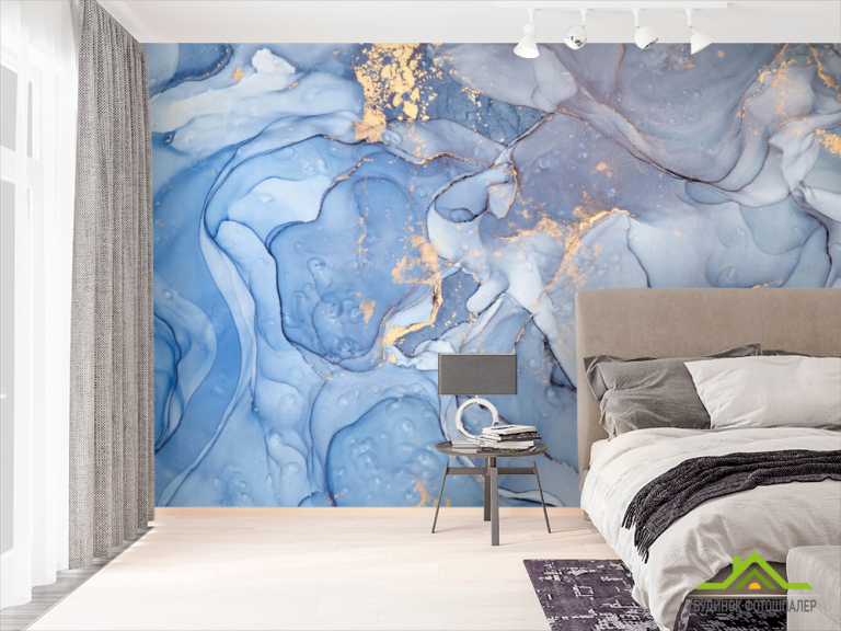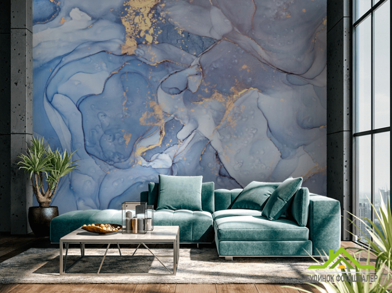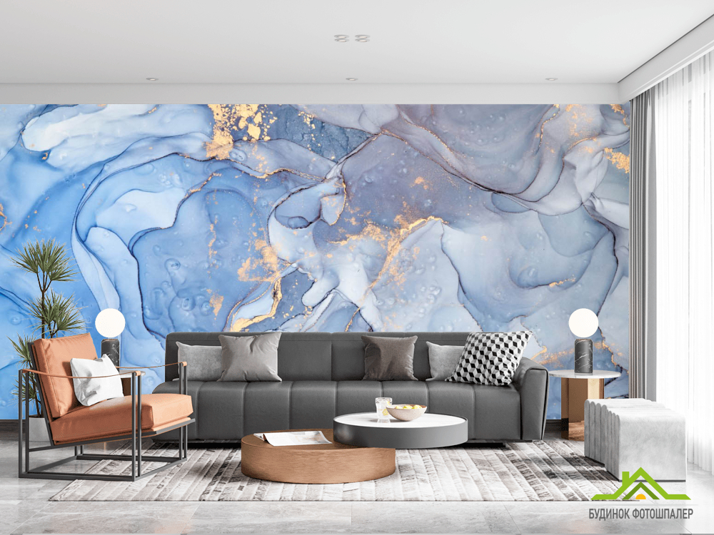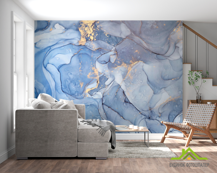 Фотошпалери Блакитний Fluid art з золотом Фотошпалери Блакитний Fluid art з золотом