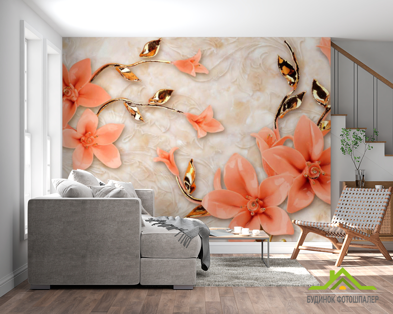 Фотошпалери сучасні 3D Стерео квіти